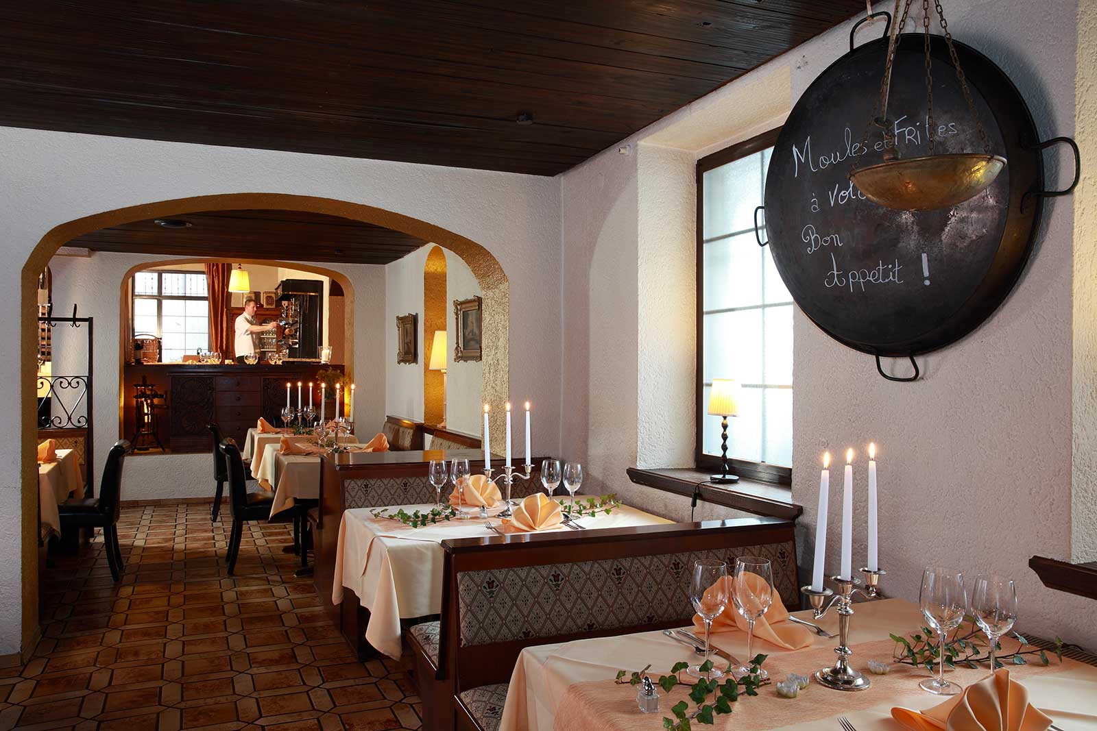 Dans une agréable salle à manger ou sur la terrasse entourée de jardins, dégustez une cuisine de saison inspirée de la gastronomie régionale et mettant à l’honneur de nombreuses autres spécialités comme les grillades au feu de hêtre ou les tartes flambées. Carte et menus sauront satisfaire avec délice tous les appétits et toutes les envies.